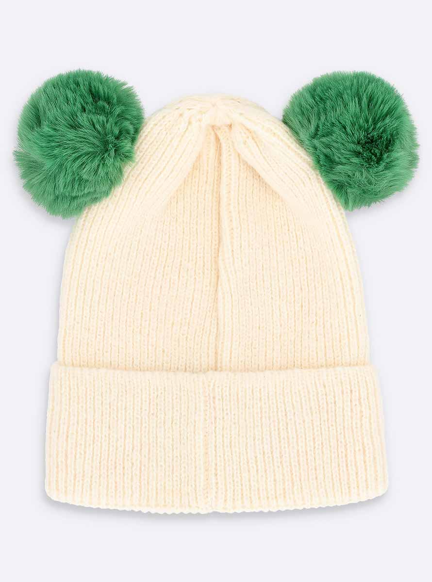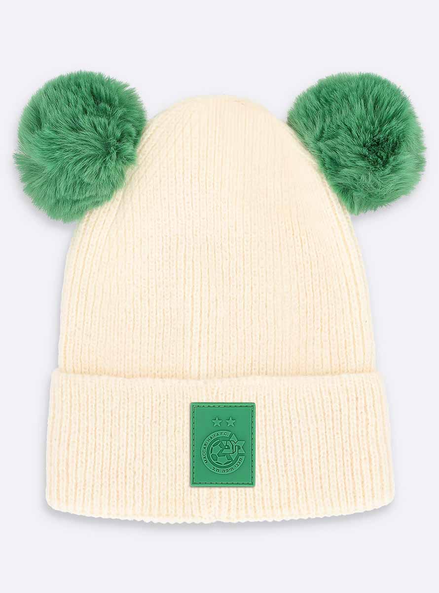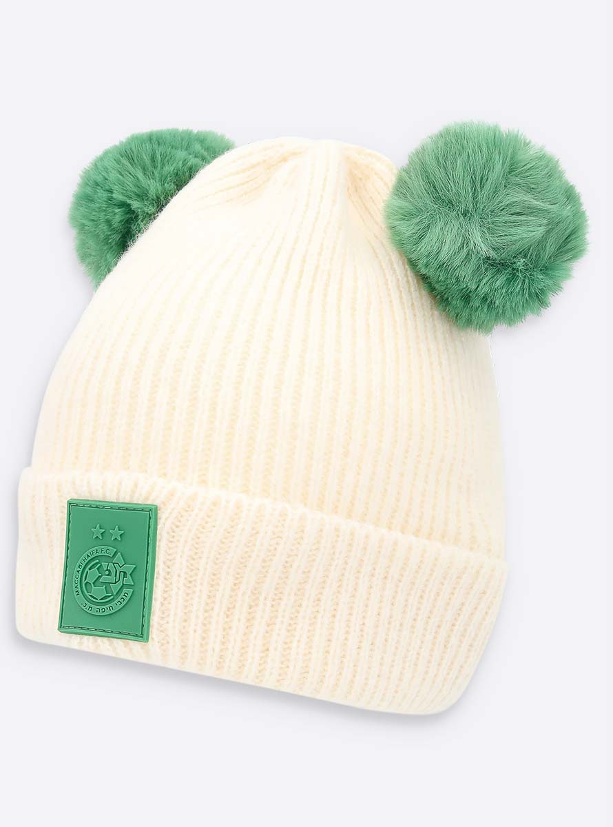 כובע צמר לבן פונפונים ירוקים לוגו סיליקון מכבי חיפה